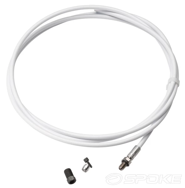 Replacement hose and end cap kit for Avid Elixir R, 5, 9, CR, X0 and CR Mag hydraulic brakes. The kit includes a hose (2 m) with a crimped end, an olive, a mandrel and a seal.