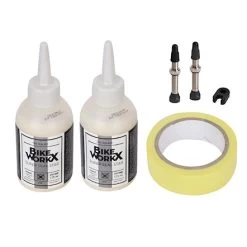 - package content: 2x Tubeless valves 60 mm, 2x Super Sealer 125 ml, 1x Tubeless Rim Tape 21 mm (for two wheels), key for valve core