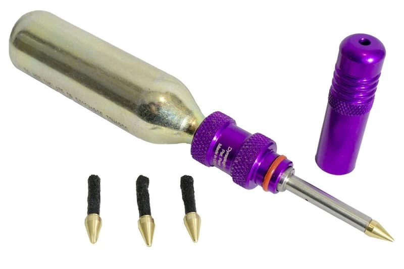 The set includes an applicator, 4 repair wicks, 2 16 g CO 2 compressed airbags, and a brush for cleaning the applicator.
