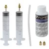 The package contains: 3x filling syringe (+ 2 spare sealing O-rings), a set of 11 brass adapters for filling all types of brakes, an overflow container for fluid, adapters for the syringe including a silicone tube and a stopper, 4 pcs of silicone tubing, a venting container for Shimano, side key 7/8mm, torx T10 and T15, collet for installing hydraulic terminals, 3 pcs.insert between brake pistons, socket wrench for bits, bits: Phillips screwdriver PH2, TORX T10/T15/T25, Allen keys: 2/2.5/3/4/5/6