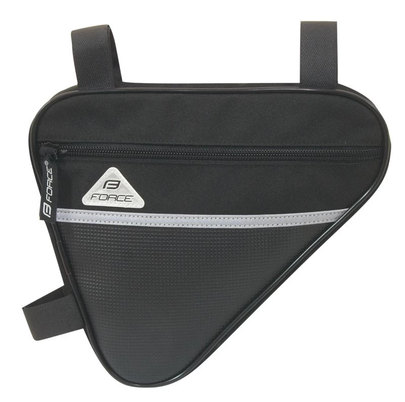 Bag in black frame with reflective strip, reinforced, frame angle 73 degrees Dimensions 24x21x5 cm, volume 1.5 liters, weight 127 g.