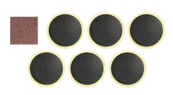 Self-adhesive patches for quick and easy repair of bicycle inner tubes. All you have to do is roughen the affected area with sandpaper, apply a patch and you can continue driving. The package contains 6 pieces of patches (25 mm) and sandpaper.
