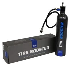 Schwalbe Tire Booster is a revolutionary tool that simplifies installation tubeless tires. The principle is very simple, ordinary pump pressurizes the bottle opening rychloventilu air penetrates the shell and the pressure surge him firmly seated in the rim. Tire Booster should not be missing in any workshop, but will come in handy on the go and races, where you will appreciate its low weight (only 435 g).