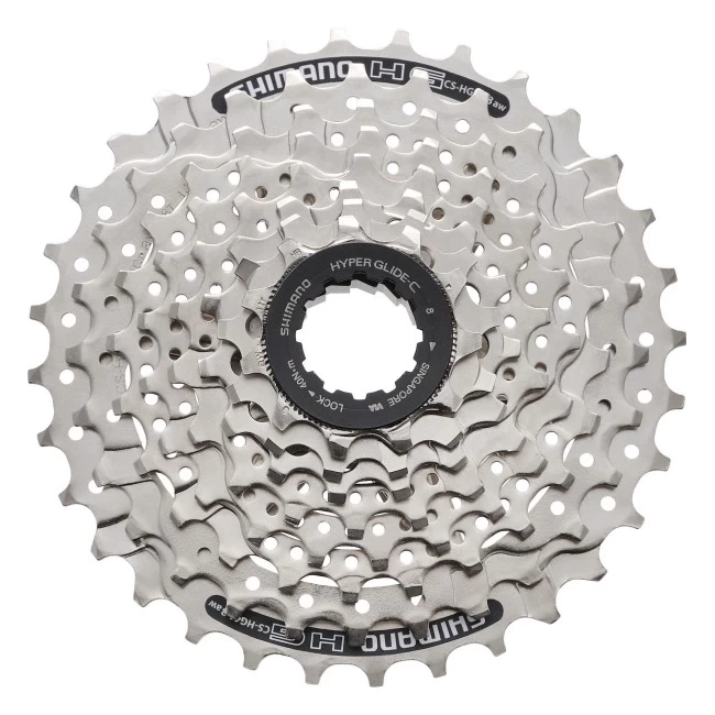 8-speed cassette, steel pinions, computer-designed teeth for easy shifting, 8 speeds.