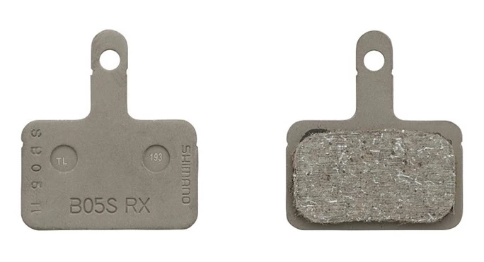 Replacement polymer (organic) brake pads Shimano B05S. New synthetic resin compound, 50% higher wear resistance than predecessor B03S.
