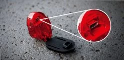 Powerful LED rear light with integrated Li-Ion battery and charging via micro USB.