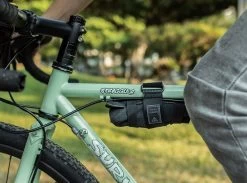 Compact bag with three compartments made of durable water-repellent material which keeps the contents dry and easy to clean.
