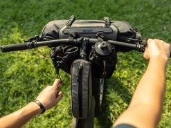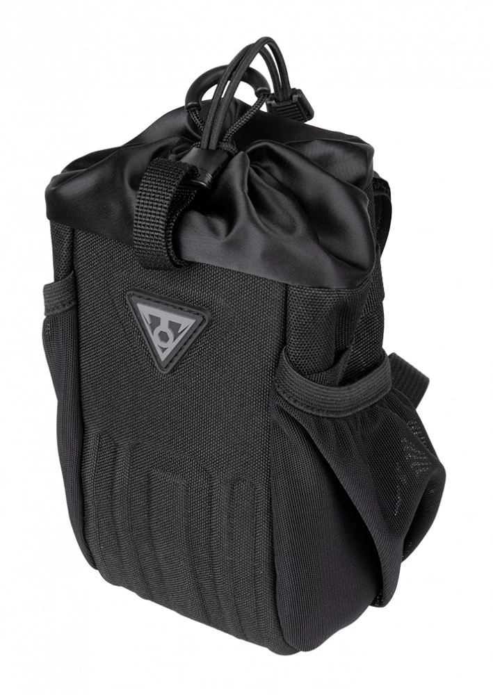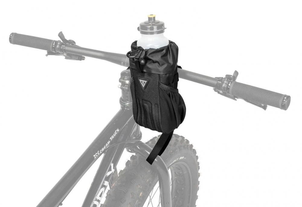 Handlebar bag that holds small items like a phone, a small camera, an extra bottle or anything else you need to have on hand. Another side mesh pocket provides more space for smaller items.